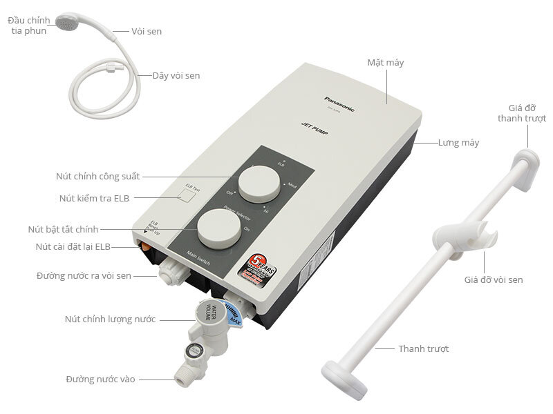 Với việc được trang bị kèm theo vòi hoa sen đa chức năng với nhiều kiểu phun nước đáp ứng nhiều nhu cầu khi tắm hoặc massage cơ thể. Bên cạnh đó, vòi hoa sen của máy nước nóng trực tiếp Panasonic cũng được trang bị bộ kháng khuẩn giúp tiêu diệt những vi khuẩn, vi trùng nếu có trong nước, giúp an toàn sử dụng ngay cả cho trẻ sơ sinh.